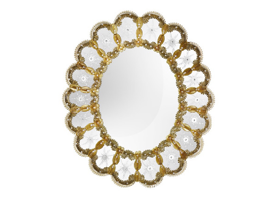 | Description: | The mirror from the Italian manufacturer Arte Veneziana. Oval wall mirror, executed in Venetian-style noble combines the luxury of antiquity and romantic modernity. The frame is decorated with two-tone floral decor of amber Murano glass, which is framed by mirror tiles with etched pattern. Mirror finish is handmade. Colours - clear, yellow, Golden. Trim the photo. |