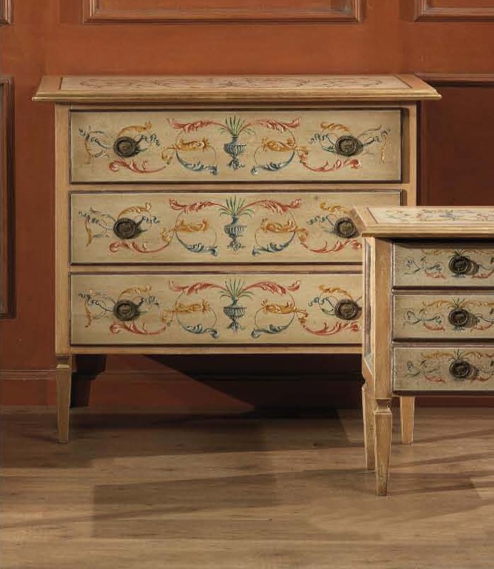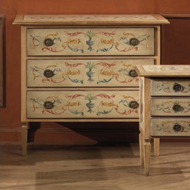 Dresser painted by Italian manufacturer Vittorio Grifoni. The model is made from solid wood. Dresser painted with patterns of extraordinary beauty and unique originality. Small intricate ornament gives tenderness of the model. This chest of drawers will become an adornment of Your interior.