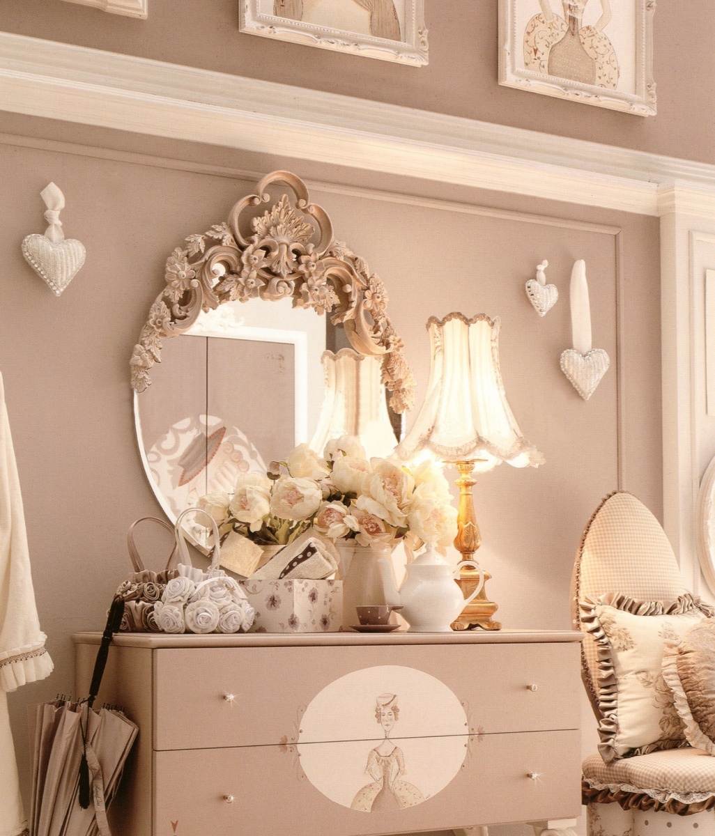 Mirror of oval shape from the Italian manufacturer AltaModa. The model is executed from valuable breeds of a tree. The mirror in carved frame perfect for a child's room and living room. Decorative elegant design makes it really stylish decoration of Your interior.
