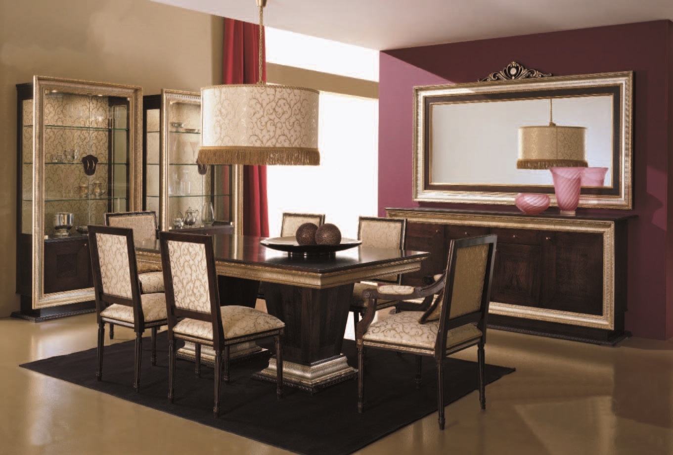 Showcase with two doors from Italian manufacturer AltaModa. The model is executed from valuable breeds of a tree. Framed in silver frame with decorative elements showcase will transform Your living room or dining room.