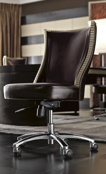A chair from the Italian manufacturer Florence Collections. Rotating a model with wheels. The frame is made of metal. The upholstery is made of leather in the catalog of the company. Design in modern style.