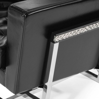 | Description: | A chair from the Italian manufacturer Arte Veneziana. A comfortable armchair made by designer in high-tech style, high quality finish and versatility - it can be used in almost any room, from library to kitchen. The chair looks equally good in modern and traditional interiors. The frame and legs of polished stainless steel. Upholstery - black leather "Bentley", backrest is trimmed with stitch Capito. The chair is refined with inlays of extraprostatic glass, hand polished. Colors - black, silver, transparent. Trim the photo. |