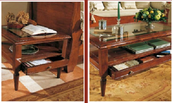 Coffee table from the Italian manufacturer CP Mobili. The frame is made from solid wood, glass top, rectangular shape. Provides a drawer and shelf. The style is a classic, perfectly fits into the living room in the same style.