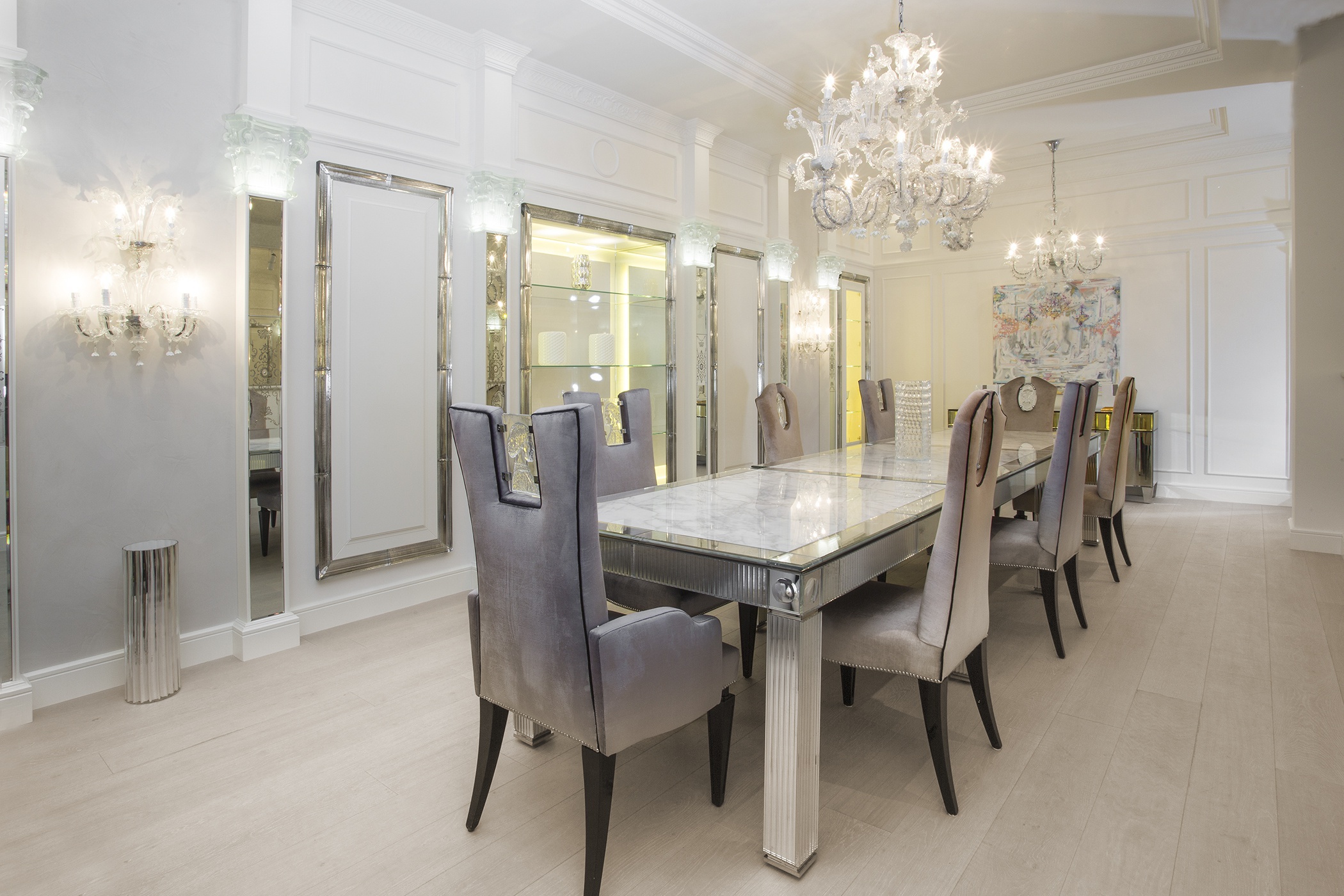 | Description: | Diamond dining table from the Italian manufacturer Arte Veneziana. A large rectangular table, designed in art Deco style, will adorn any dining room. The base is made of wood, covered with clear glass with beveled edges, and finished with stainless steel inserts. Worktop in Carrara marble calacatta milky color 20 mm thick trimmed on the perimeter of the stainless steel strips. Colors - transparent, bright, silver, milky. Trim the photo. |