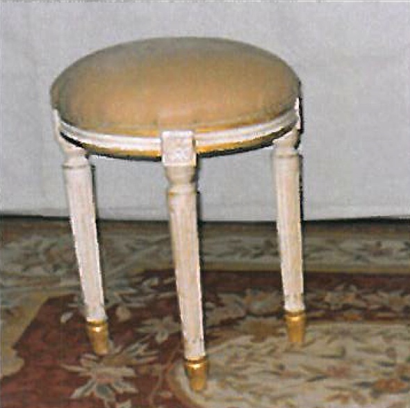 Stool from the Italian manufacturer Vittorio Grifoni. The model is made of wood, upholstery - textiles. Lacquered legs. Exclusive design, soft and comfortable seat, stable gold-plated legs make it elegant and cozy. The stool looks great in any interior.