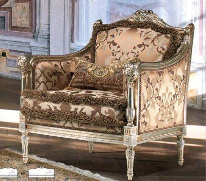 | Description: | Praga chair from the Italian manufacturer Lunardelli. The frame and legs are made of wood. The surface is covered in gold decape. Seat and back covered with textiles. Filler - foam, Dacron and silicone fiber. The chair is made in a classic style. |
