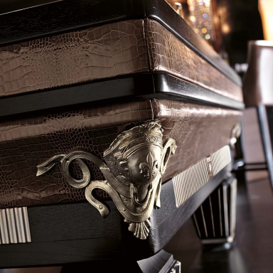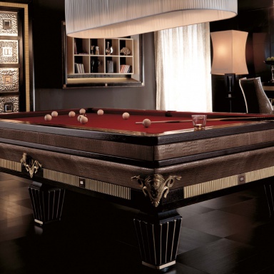 | Description: | Elegant billiard table for Russian pyramid Italian producer from Florence Collections. The frame and legs with vertical carved made of wood. Finish - Atlantique 6/1 cat.A. The side parts are covered with skin American Gabon Terra cat.B. Decorate the table with decorative elements and gold foil. W playing surface.360; d.180. The surface is covered with a cloth. 10 col.RED. |