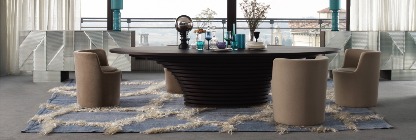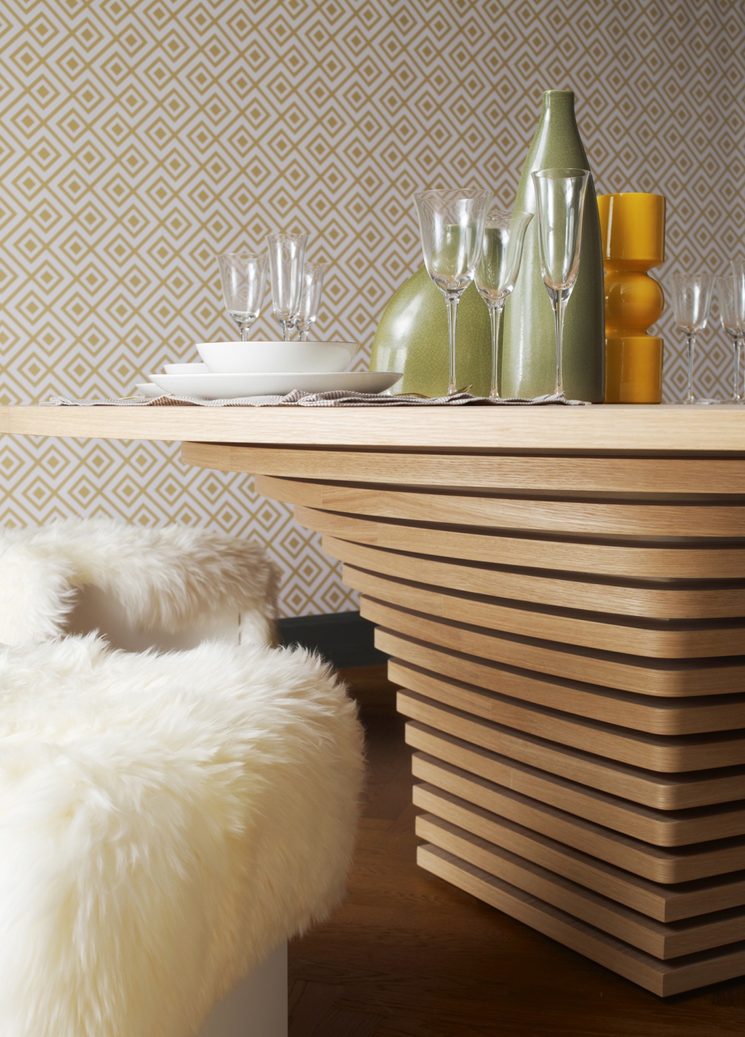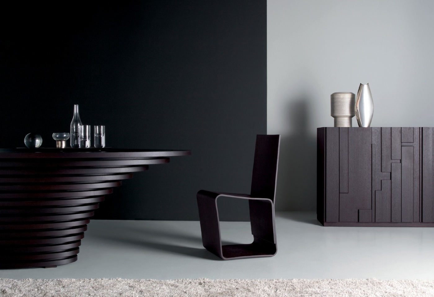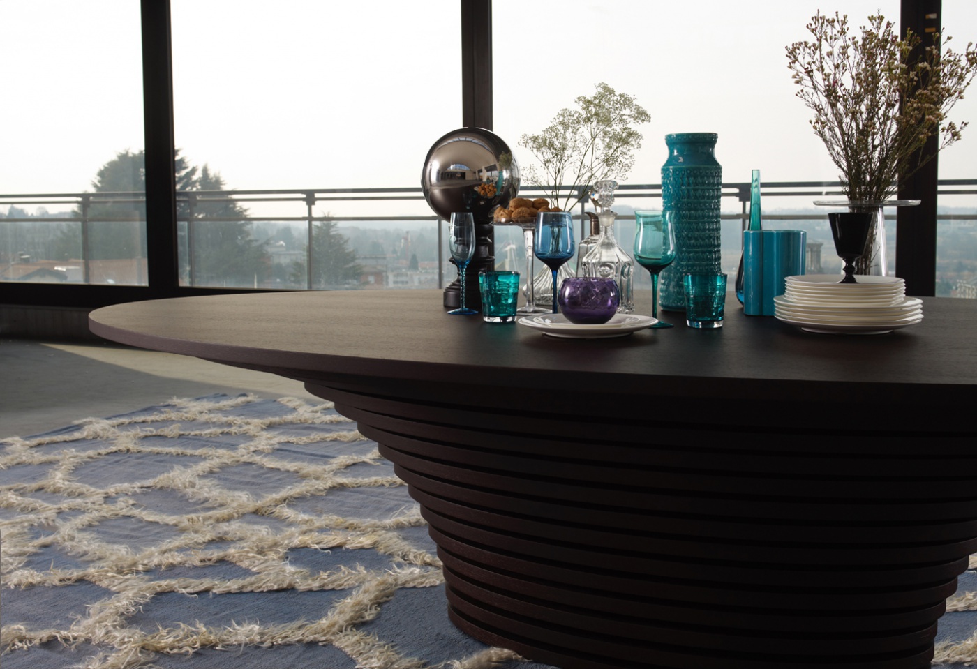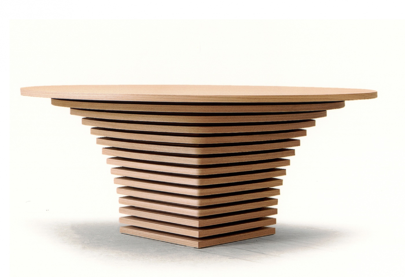 Table Palermo from the Italian manufacturer Emmemobili. Original dining table from designer Ferruccio laviani successfully complement modern interior dining room or living room. The silhouette formed under the influence of the various elements stacked in the distance with wooden separators. Top 30mm thick. Material - stone-wood-natural, tinted oak or wenge. There are also low tables. The size, grade and color is in stock.