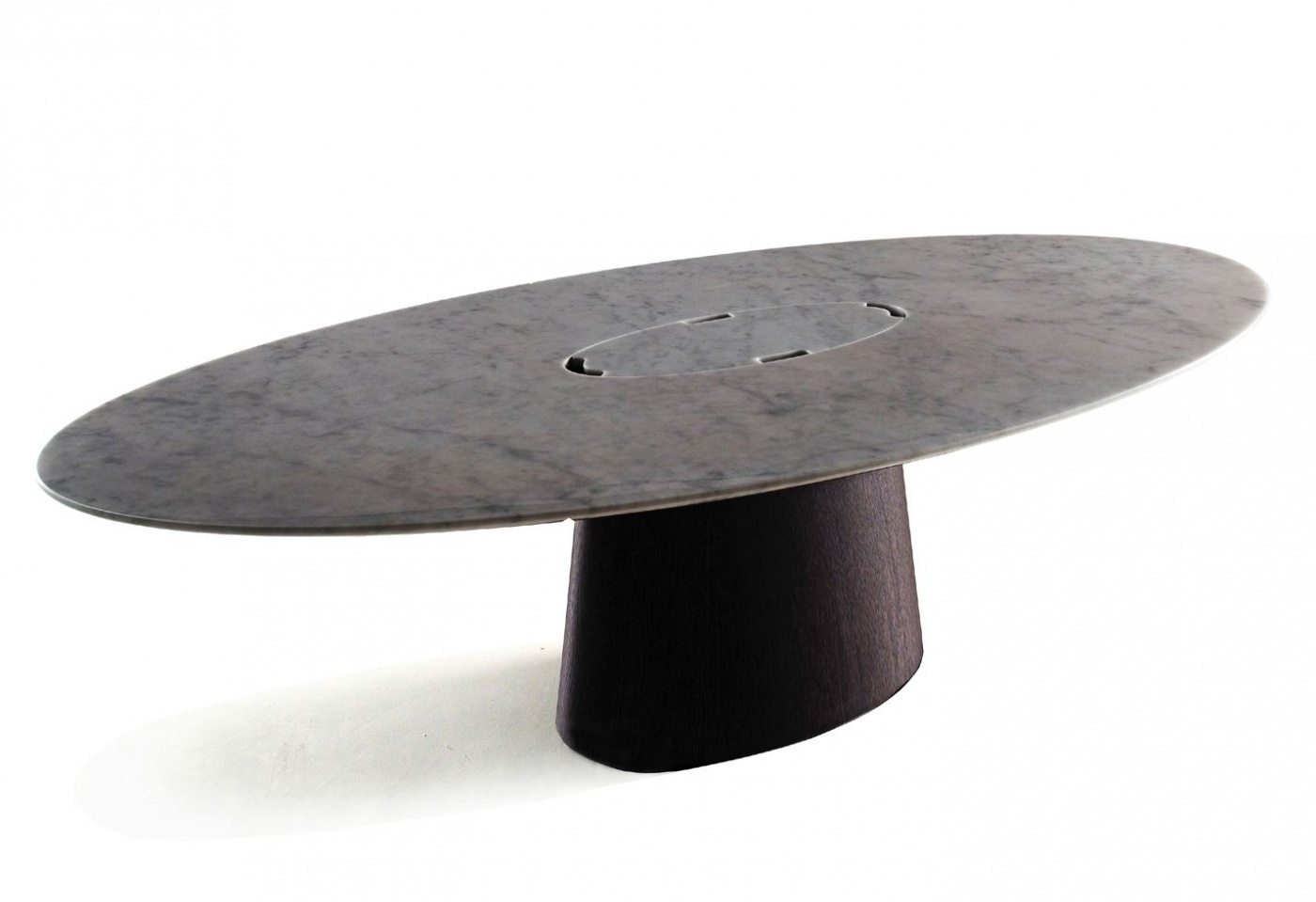 | Description: | UFO full table from the Italian manufacturer Emmemobili. Oval dining table by designer Ferruccio laviani. The base and the table top is made from laminated timber. The table is fully finished with wood veneer, palm wood. Colors - dark brown. Trim in photo 2. |