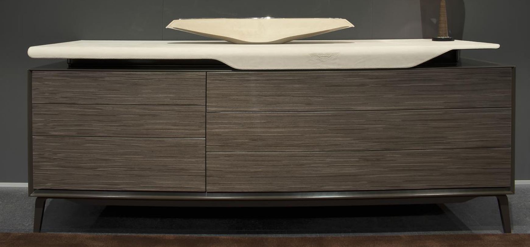 The V150 chest of drawers from Italian manufacturer Formitalia. The model collection Aston Mаrtin. Frame - wood, in the finishing of veneer and leather. The color palette in the catalog. The style is modern.