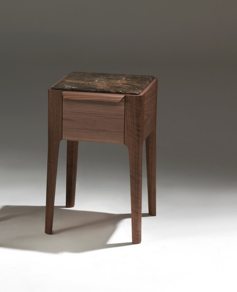 Ziggy bedside table by Italian manufacturer Porada. Model with a frame made of walnut and drawer. The top is made of wood or marble. The modern design.