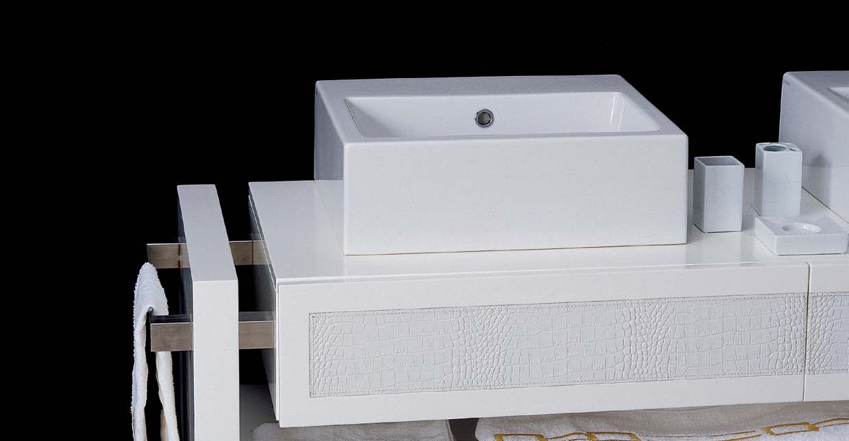 | Description: | Bathroom sink Cabinet Plaza from the Italian manufacturer Formitalia. Model of the collection Boutique, with two sinks, closets, drawers. Trim - leather cocco miss white, varnish . The color is white. Finish on the photo. |