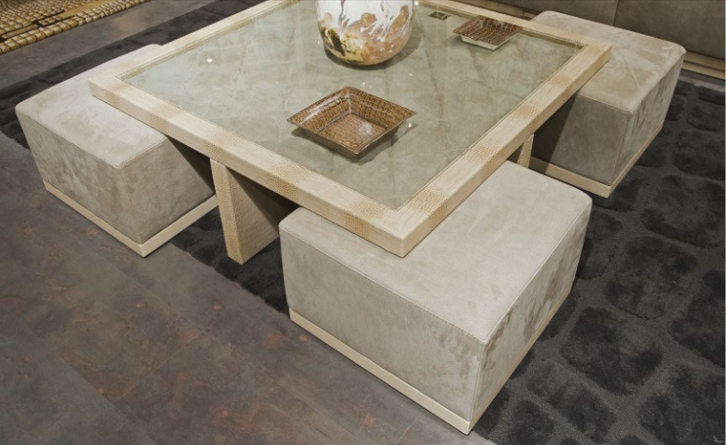 | Description: | Suitcase coffee table from the Italian manufacturer Formitalia. Frame trim - leather cocco miss corda, top - skin shabrack tapir. The color beige. |