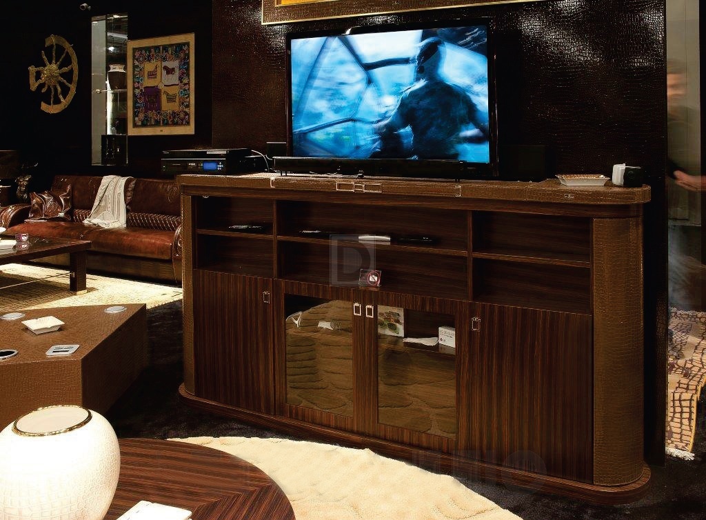 Cabinet for TV Movies A Round from the Italian manufacturer Formitalia, structure, fa?ade - wood. Sash glass. The finish is rosewood veneer, crocodile leather. Fittings metal, Nickel. The surface is lacquered, semi-gloss. Style classic.