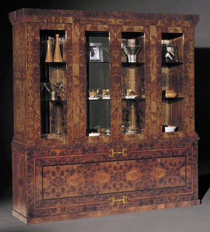 veneer: elm shelves, doors: glass accessories, fittings: gold |