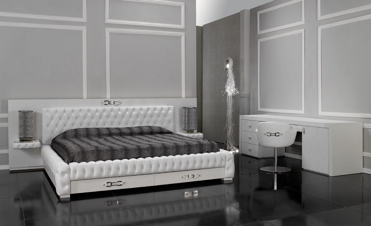 Set for bedroom Lexington from Italian manufacturer Formitalia. The furniture in the art Deco style, the collection Boutique. Consists of double bed, bedside tables, upholstered bedside bench. Set is decorated with stitch - Capito, metal parts. The frame is made of wood, upholstered in leather from the company portfolio. Colours in stock. A perfect choice for a sophisticated bedroom.
