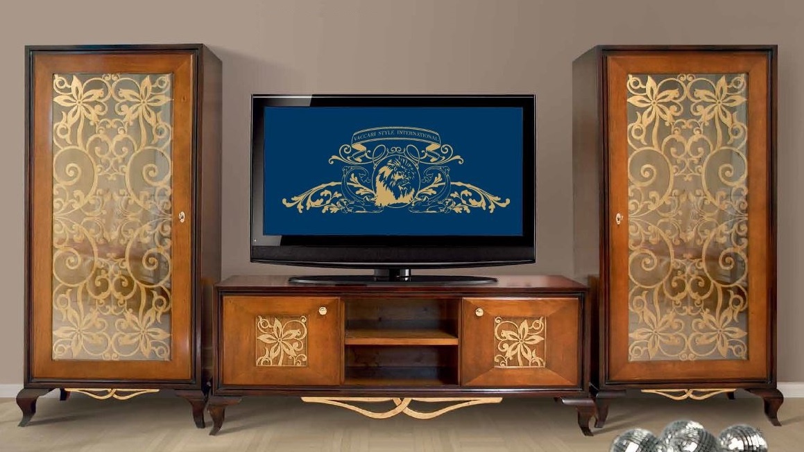 | Description: | Showcase 1 on folding carved legs, opening to the left. The frame is made from solid, the door decorated with a decorative pattern. Finish CAT.B 8-MOKA FRANCESE + gold foil, carved elements are made manually. Fittings and metal handles. |