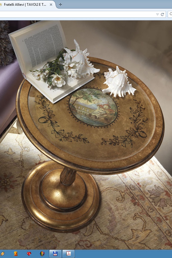 | Description: | Coffee table from the Italian manufacturer Fratelli Allievi. Elegant round metal table, designed in Venetian style, will look great in the living room, dining room or hall. A massive round base, the table top is decorated with etched patterns; in the middle is a medallion depicting pastoral scenes. The metal finish is polished brass. Details of finishes and colors in the photo. |