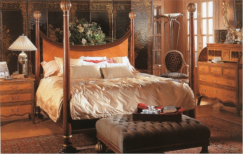 Double bed in a classic style from the Italian manufacturer Provasi. Bed frame made from solid wood. Headboard made from solid yew and rosewood.
