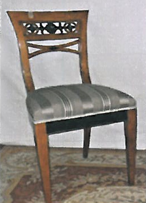 A chair from the Italian manufacturer Vittorio Grifoni. The model is made of wood, upholstery - textiles. The chair has a decorative pattern on the backrest and well padded seat is made. The chair from Vittorio Grifoni will decorate Your interior.