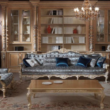 | Description: | Quadruple sofa Cardinale-104 from the Italian manufacturer Fratelli Allievi. The luxurious sofa in the Rococo style becomes the focal point of any living room and will create a bright decorative spot in the interior. Frame and turned legs Cabriole made of natural wood and covered with white lacquer and decorated with carving and gilding. Curly back, decorated with carved phial and trimmed inside with stitch Capito smoothly into the small padded armrests. Blue satin upholstery. Colors - white, blue, Golden; trim parts on the photo. |