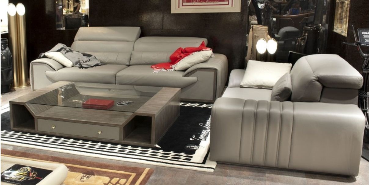 Sofa set Long Race from the Italian manufacturer Formitalia Model from the Tonino Lamborghini collection. Set includes three seater sofa and coffee table. Frame made of wood. Finish the front of the sofa, the bottom of the table - veneer Matt. Sofa upholstery made of genuine leather. The table top is made of glass. Offers a wide range of colors. The style is modern. A perfect choice for classic and modern living room.