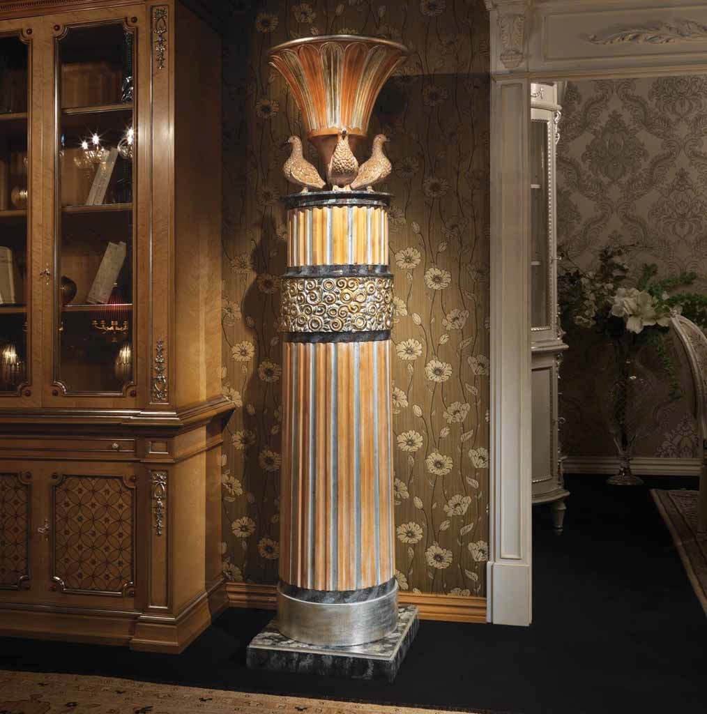 Column from the Italian manufacturer Ezio Bellotti. The base is made of natural wood and decorated with handmade carving. The perfect accessory for a classic or Baroque interior.