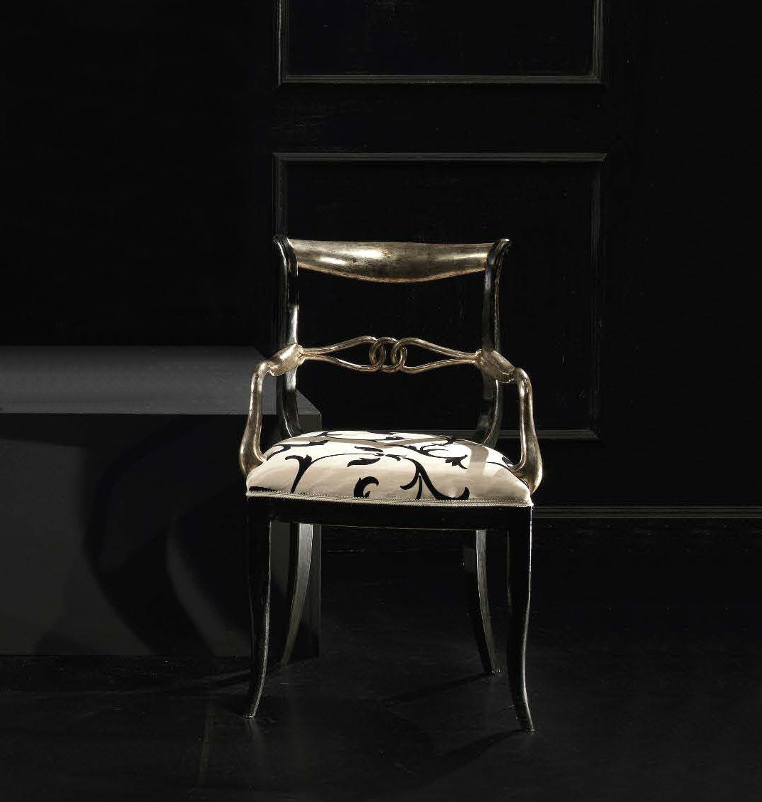 Armchair from Italian manufacturer Vittorio Grifoni. The model is made of wood, upholstery - textiles. Gorgeous original chair has armrests, a decorative back and upholstered comfort seat. The chair fits perfectly in any living room or dining room.