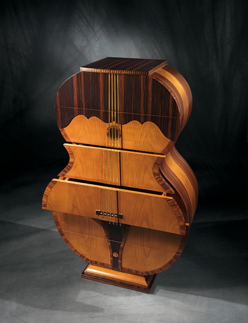 POIS Cabinet of solid wood from the Italian manufacturer Carpanelli. The model in the form of a double bass with drawers. Made from solid wood, the upper part in the finishing of the rosewood, the Central part of cherry with brass edging.