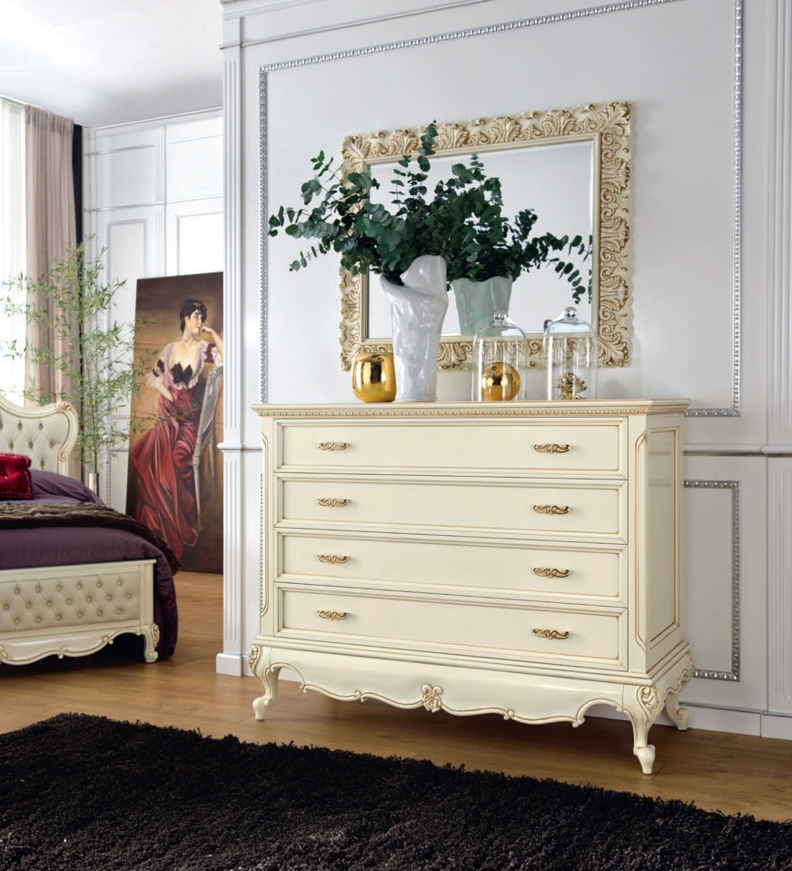 | Description: | A chest of drawers from Italian manufacturer Mirandola Export. The model with four roomy drawers. The frame is made of wood and decorated with carved and gilded elements. Finish and color as in the photo. |