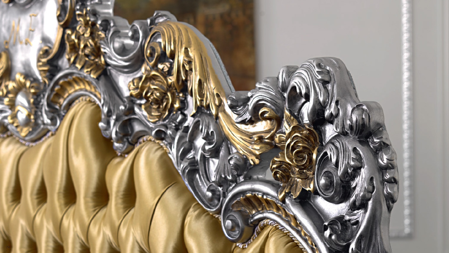 | Description: | Double bed from Italian manufacturer Mirandola Export. Model high quilted headboard. Headboard edged frame richly carved and gilded elements. The frame is made of wood. Finish - M77. The upholstery is made of textile fabric - MG213 Gold. The color in the photo. |