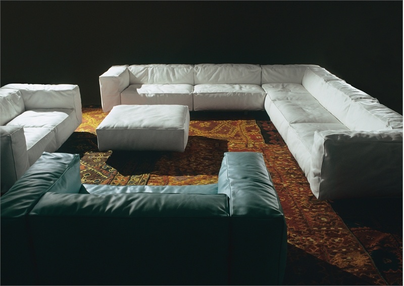Pouf upholstered in leather Sofa Gran Khan, Edra