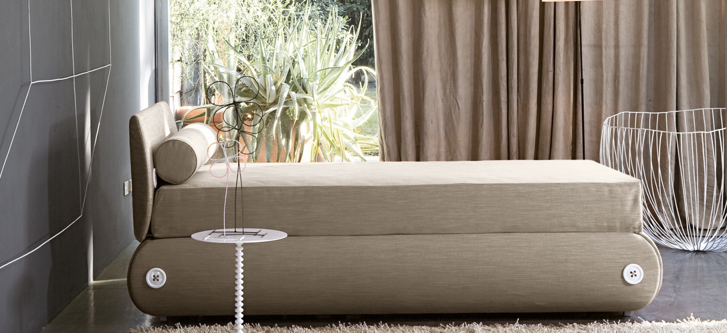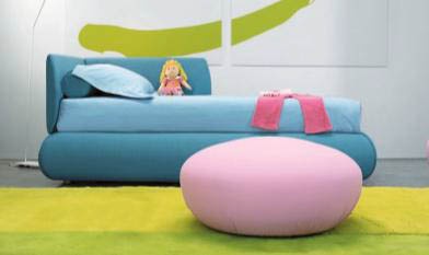Candy single bed from Italian manufacturer Bonaldo. The frame is made of metal and wood. Upholstery textile. Filler - polyurethane foam. The color palette to choose from for the company directory. Different practicality and elegance.