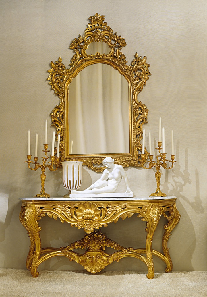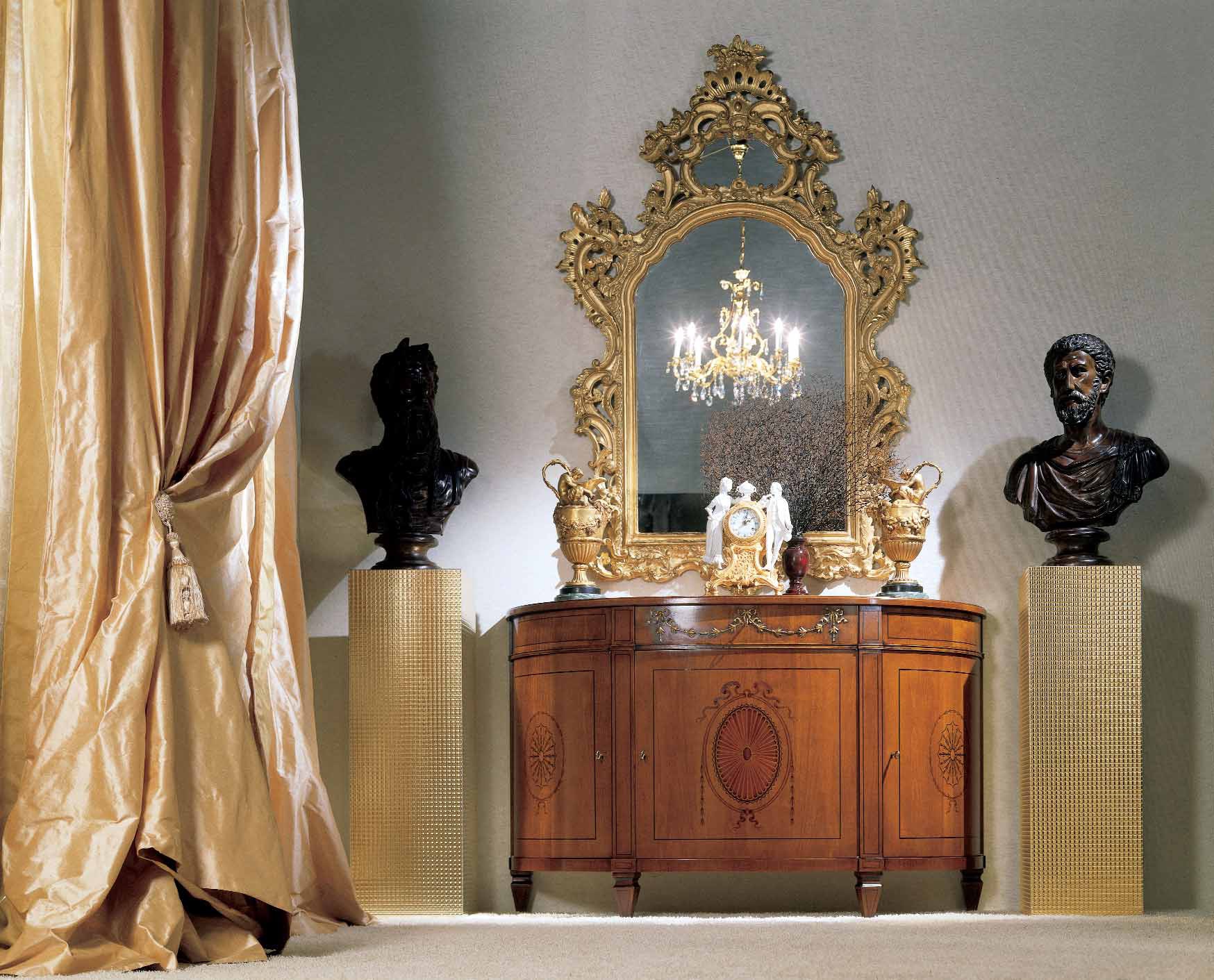 T48 wall mirror from the Italian manufacturer Zanaboni. The frame is made of natural wood. The decor is exquisite carving, gilded. The frame is made by manual work. Colors - in stock. The product is made in Baroque style, the perfect choice for interior decoration.