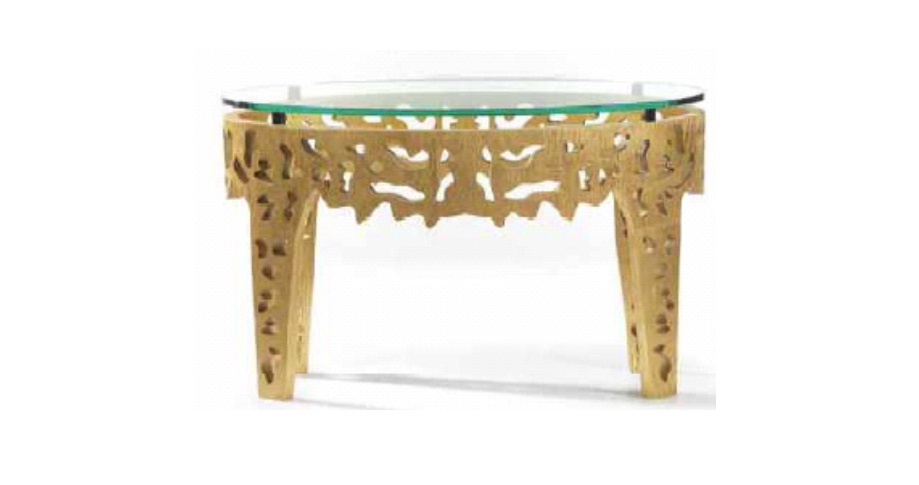 Dining table round with gold-plated carving Arnaldo, Zanaboni