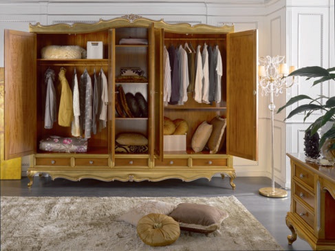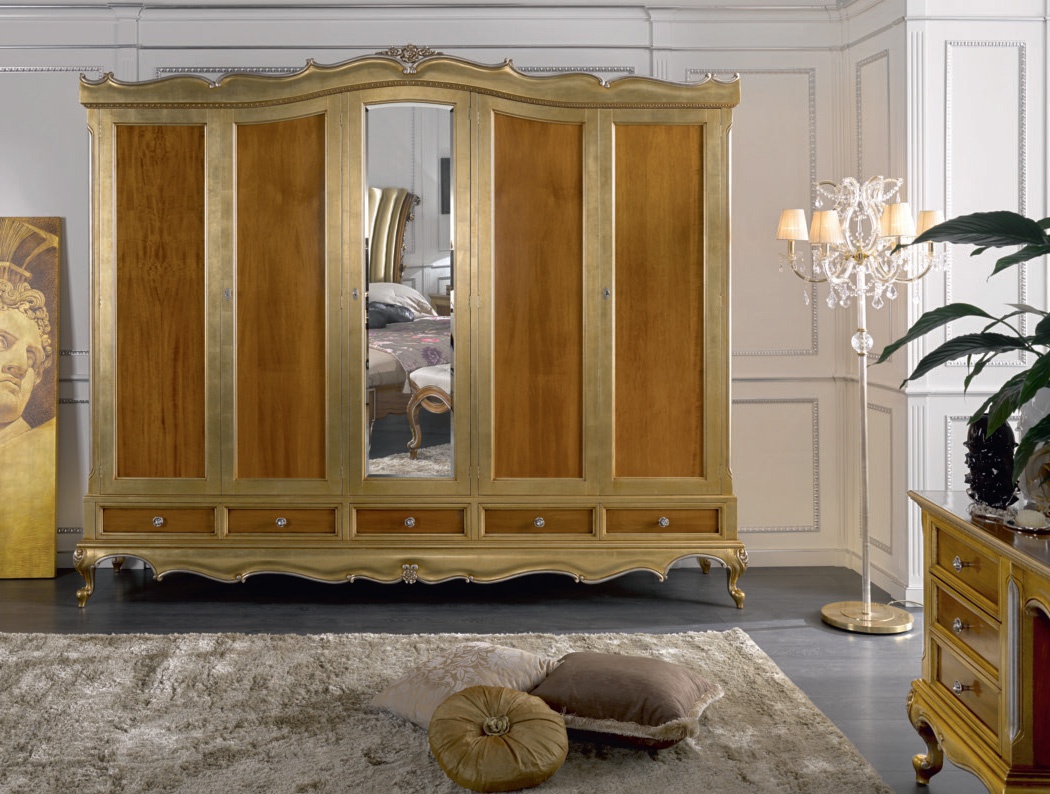 Wardrobe from the Italian manufacturer Mirandola Export. The frame is made from solid wood, the middle door is mirror finished. The frame is decorated with carvings. Finish - M76 Luxury Version. Great model for the interior in classic style. Product color as in the photo.