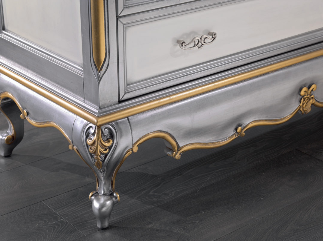 A chest of drawers from Italian manufacturer Mirandola Export. The frame is made of wood and decorated with carvings. Finish - M41+M77. The model with four large drawers. Great model for the interior in classic style. Product color as in the photo.