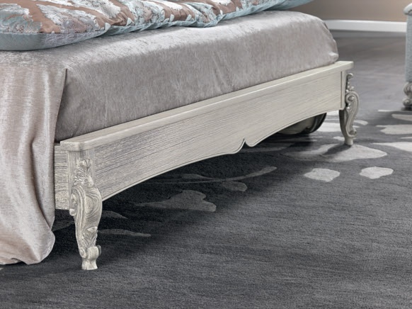 | Description: | Double bed from Italian manufacturer Mirandola Export. Model with high headboard. Headboard edged carved frame. The frame is made of wood. Finish - Butter & Silver hollow effect. The upholstery is made of textile fabric - Cristallo 1421/20. The color in the photo. |