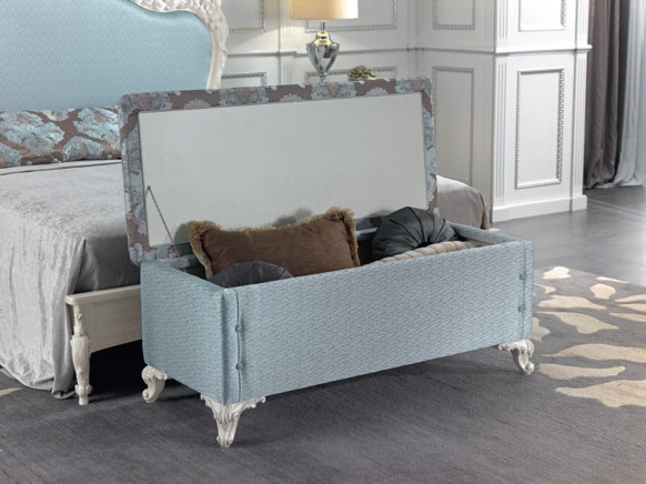 | Description: | Bench from the Italian manufacturer Mirandola Export. Model with a folding seat and storage compartment for bed linen. The frame is made of wood and decorated with carvings. Finish - Butter & Silver hollow effect. The upholstery is made of textile cloth. The color in the photo. |