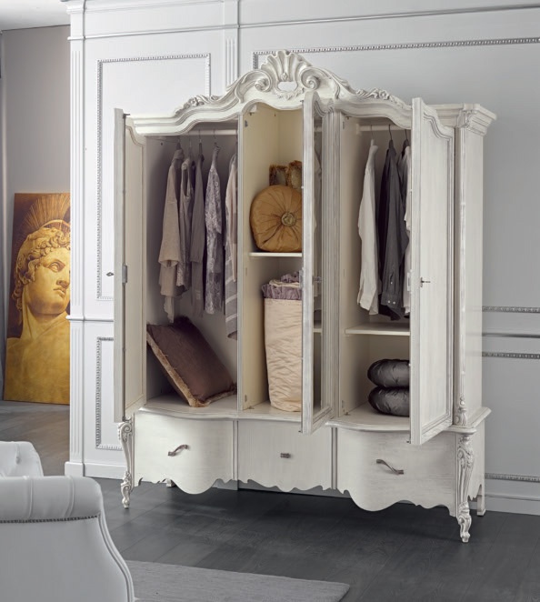 | Description: | Wardrobe from the Italian manufacturer Mirandola Export. Three door with mirror in the middle. The frame is made of wood and decorated with carvings. Finish - Butter & Silver hollow effect. The color in the photo. |