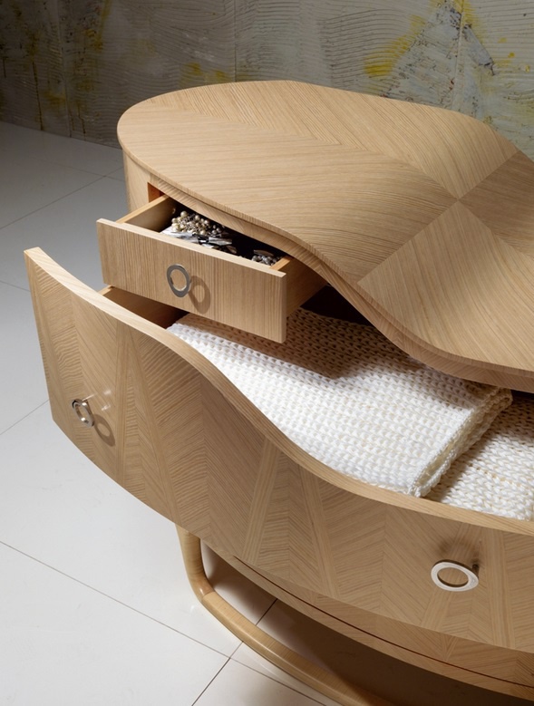 The IRIDE of drawers from Italian manufacturer Carpanelli. Model with drawers. The base is made of solid wood maple, the structure of multilayer wood and solid, the finish is back in stock. In the top drawer provides space for storing jewelry.