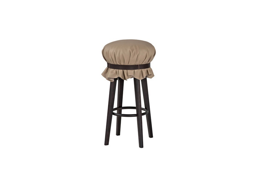 Chair Popit/B of the Italian producer of Frag. Round wooden chair from designers Andrea Mancuso and Emilia Serra. The seat is covered with skin draped as a tunic and tied a beautiful leather strap. The dimensions and upholstery of the seat according to the manufacturer's catalogue.