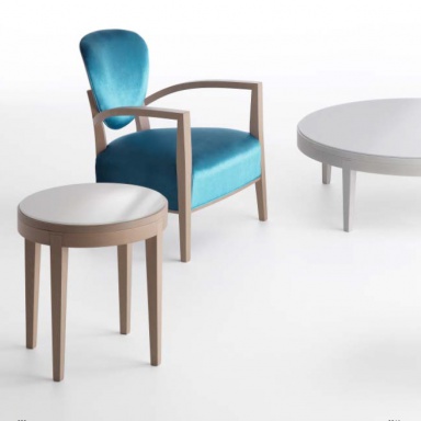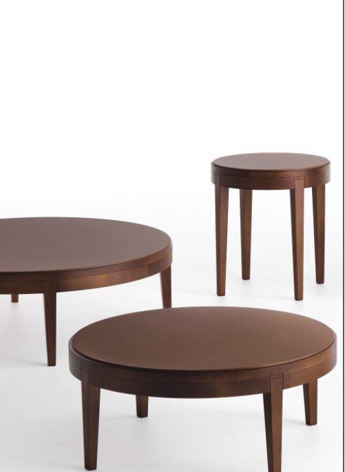 Toffee coffee table from the Italian manufacturer Busnelli. Collection of coffee tables Toffee from designers EDI and Paolo Ciani, intended for decoration of the hall, a rest area or hotel room. The frame and legs are made of solid wood, round glass top. The color and size of table can be choose according to the catalogue of the manufacturer.