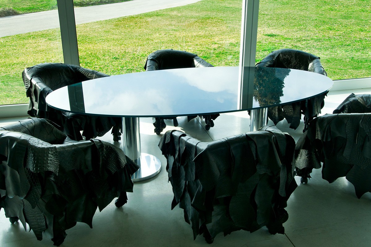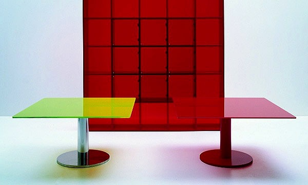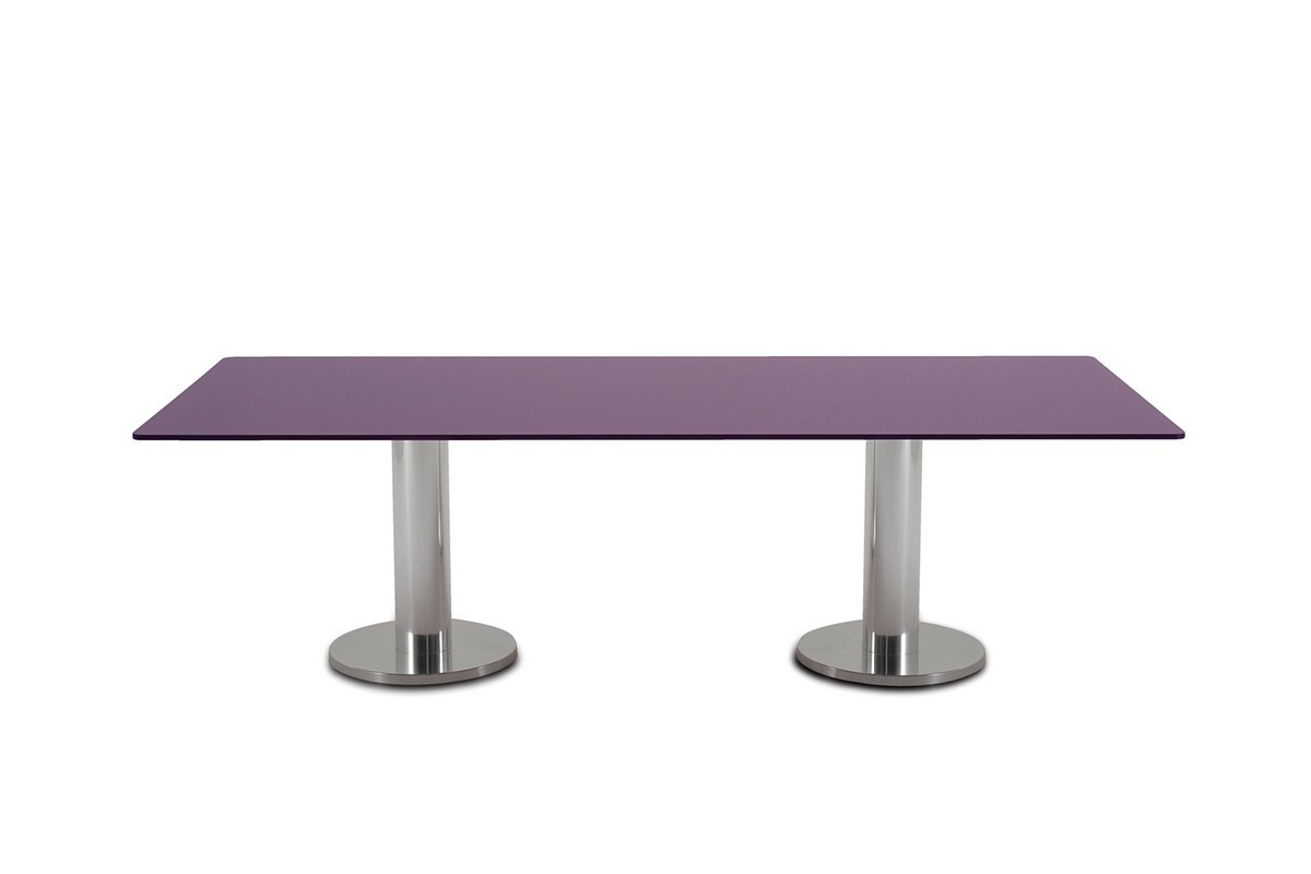 The Croma table from the Italian manufacturer Edra. The base of the metal table, the glass countertop. The model is made in modern style. Dining table: square, rectangular, round and oval. Table top in tempered glass – 15 mm thick – natural or painted. Available in various sizes and shapes. The height and color in stock.