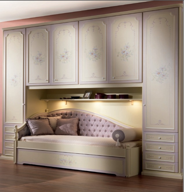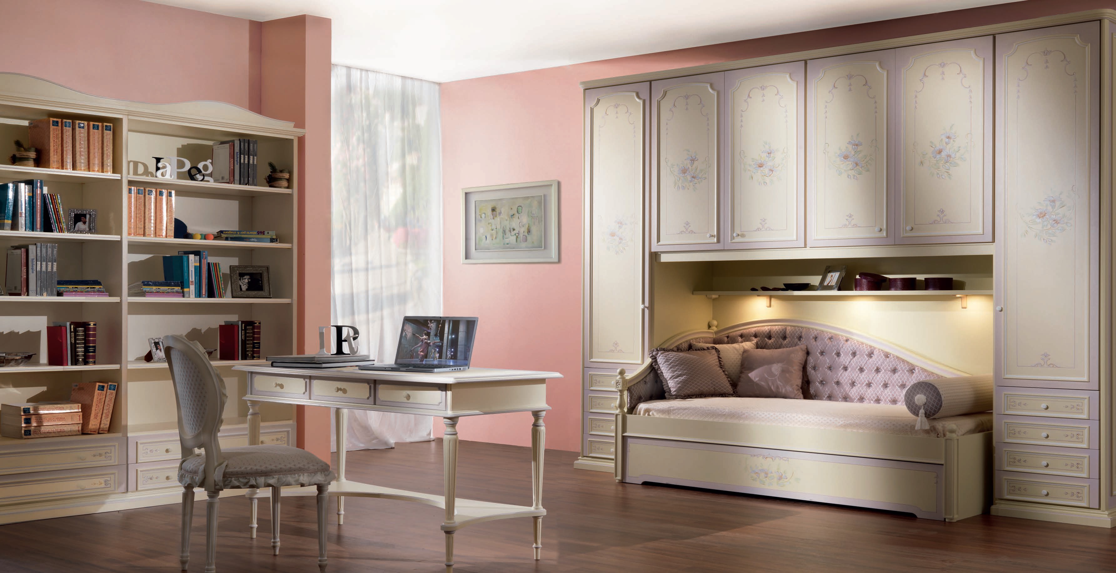 Tania couch from the Italian manufacturer Pellegatta. Couch with extra bed. Materials: solid wood, tambura. Finishing varnish from the range of the company, hand painted. Upholstery textile - the directory of the manufacturer. Product in a classic style, a perfect choice for bedrooms, children's room.