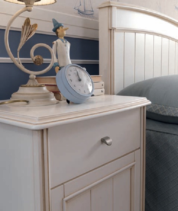 Martin bedside table from the Italian manufacturer Pellegatta. The product with a drawer and a door. Structure made from solid wood. Accessories metal. Finishing varnish from the range of the manufacturer. Available with a weathered surface. The product in a classical style with elements of Provence.