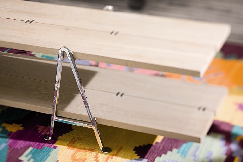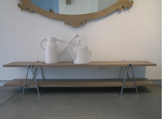 rack: metal shelves: oak |
