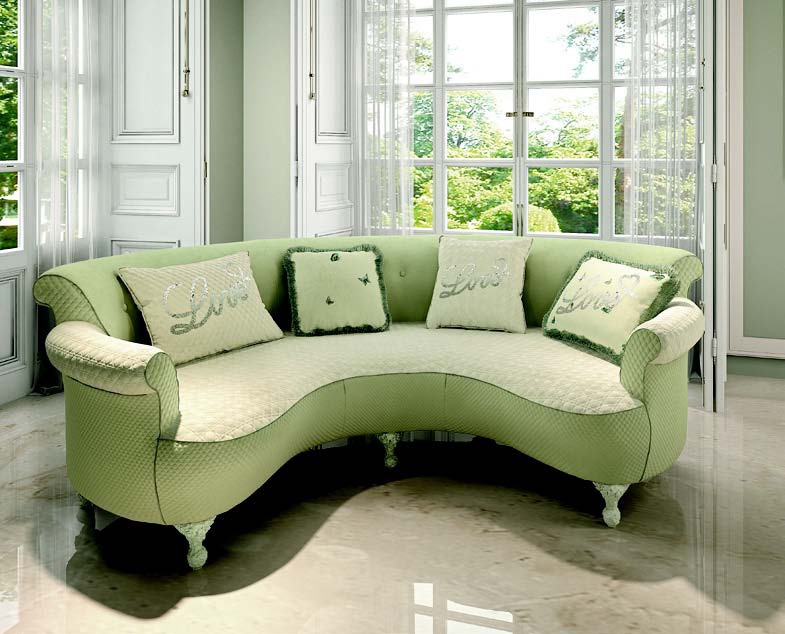 Fagiolo semi-circular sofa from Italian manufacturer Halley. The frame is made from solid wood, legs are figured, metal, upholstery textile. Wide color range, based on manufacturer's catalogue. Sofa in a modern style. A perfect choice for a modern living room. Additionally, you can buy pillows of various sizes, a wide color palette.