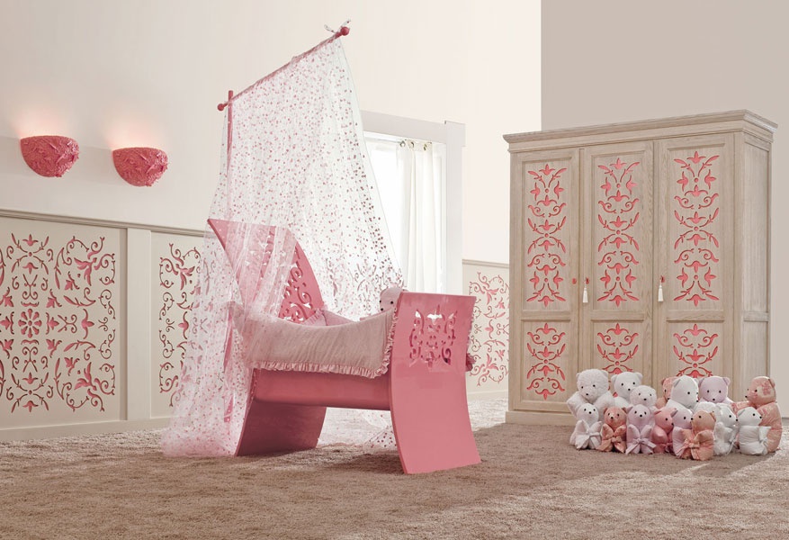 The cradle of baby Andy from the Italian manufacturer Halley. The frame is made from solid wood. Finishing varnish from the company portfolio. Possible decor with gold leaf, carved floral ornament, a cross-cutting thread. Product design, with classical elements. Fill the kid's room a light atmosphere and harmony. Additionally, you can buy the runners for the cradle, direct floor mount for curtains, curtain, bumper for crib.