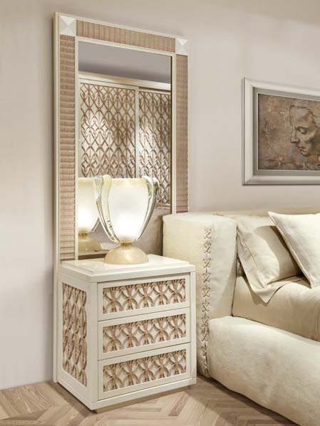 | Description: | Bedside table from the Italian manufacturer Halley. The product with three drawers with carved oak, with opening push pull. Color - ivory. The finish on the main picture. |